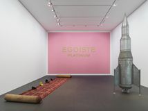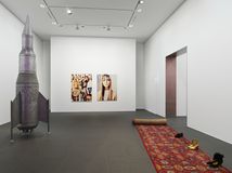 "Early Work" reunites iconic works from the Nineties comprising installations, sculptures, neon works and photographs. From the early stages of her career, Swiss artist Sylvie Fleury (b. 1961) utilizes the world of fashion and luxury goods and its inherent mechanisms of commercialisations as her playground of artistic expression. Highlights of the present exhibition are two "Untitled" installations, exemplary of her modus of creating contemporary allegories of desires. The monumental sculpture of galvanised steel "First Spaceship on Venus", 1994, on the other hand, is an iconic statement of Fleury’s infatuation and delightfully humorous appropriation of overtly chauvinist symbols.