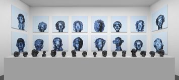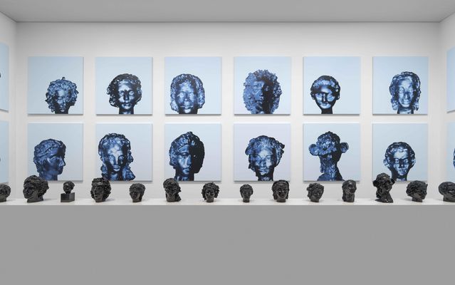 This winter, Galerie Andrea Caratsch is showcasing a group of works by George Condo (b. 1957) consisting of sixteen bronze sculptures titled “Expanded Portraits” from 2002, staged in front of the blown-up silkscreen paintings of the same sculptures. Reflecting the artist’s extensive studies of Greek and Roman statuary, the portraits are structured according to classical ideal proportions. Subject-wise Condo reworks his much beloved protagonists of ancient mythology and his own inner world. We reencounter the “Alcoholic”, “The Old Waternymph”, a disillusioned “Virgin”, a brooding “Perseus” and other familiar figures. Seen as a whole, the enfilade of sculptures offer a unique experience of the artist’s elaborations on the antagonisms between idealized principles and the disenchantment and alienation of human experience.