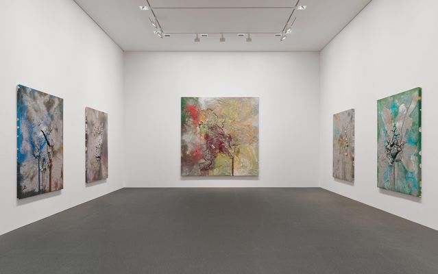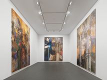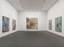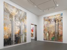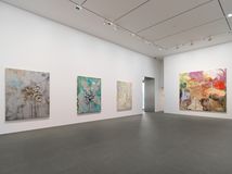 The exhibition Pantan (Rhaeto-Romanic: “Puddle”) presents fifteen large-sized Puddle Paintings by John Armleder through April 2014. Glitter, toys, small decorative articles of all sorts and pots filled with paint, varnish and solvent are spilled over the canvas in a mixture of chance and control. Armleder explores the accidental outcome in a graphical way, which in turn is emblematic of his complete oeuvre.
